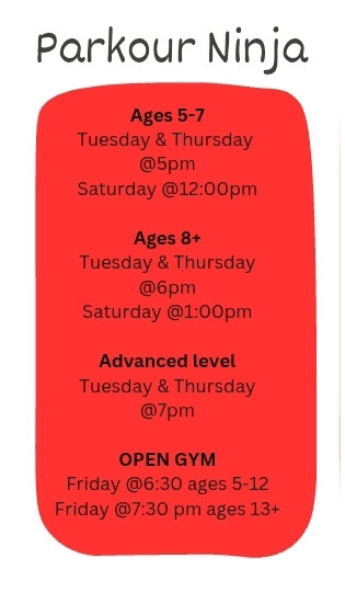 Join us to help your child build a strong foundation in physical and character development through our fun and engaging dance, tumbling, and parkour ninja programs!